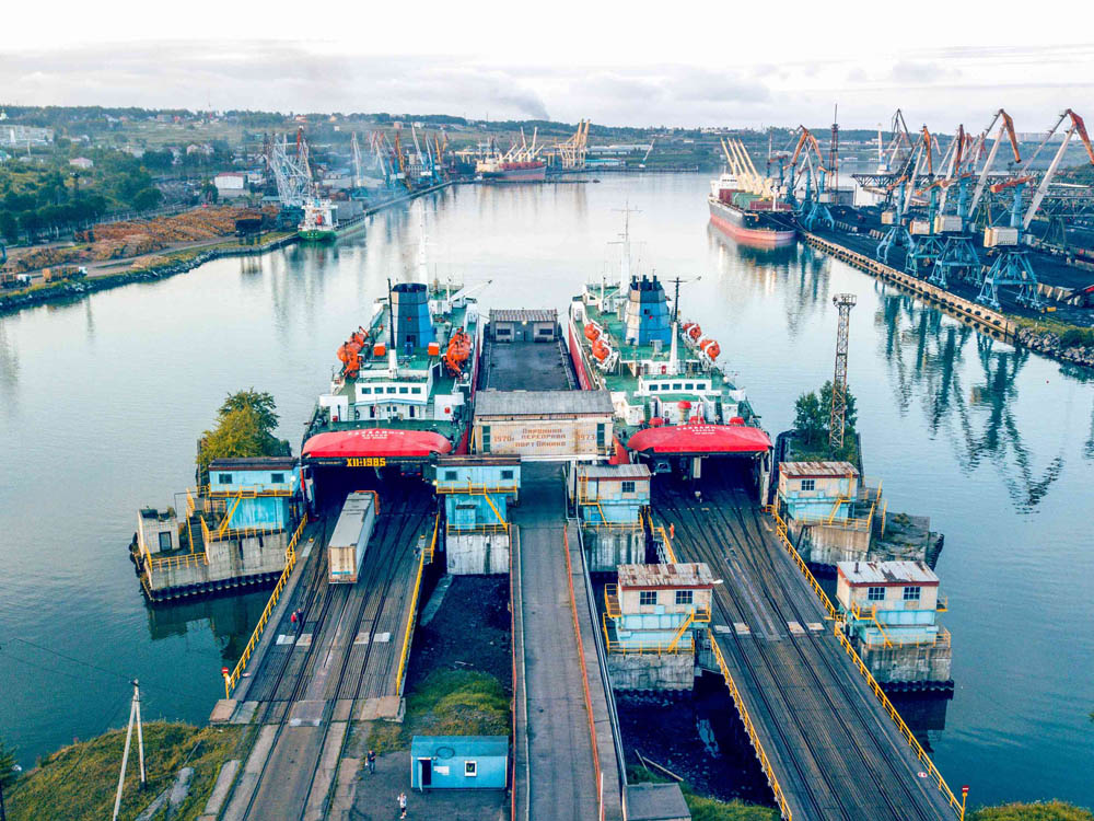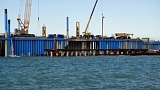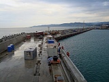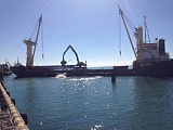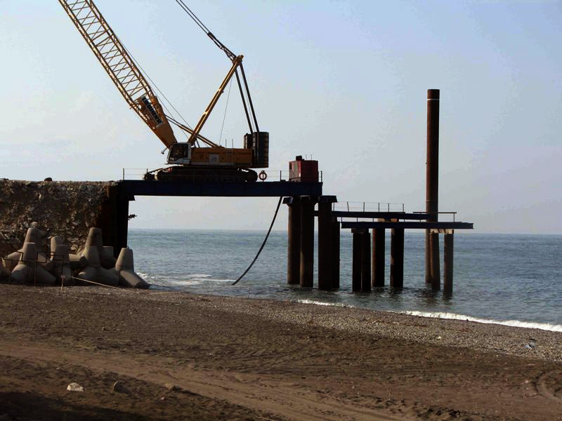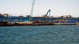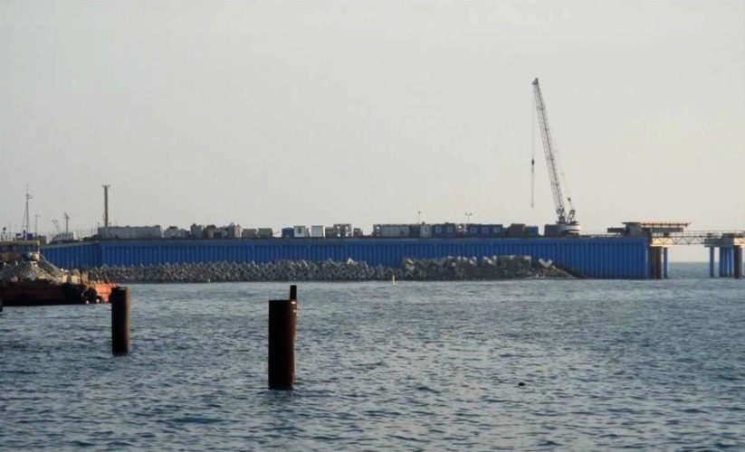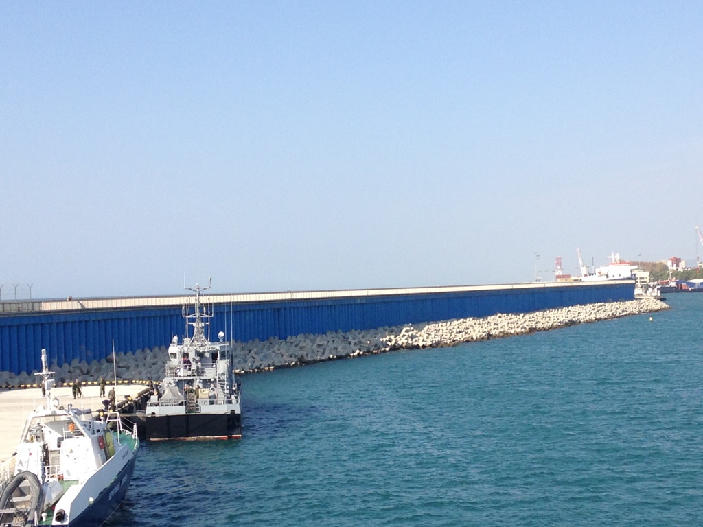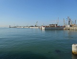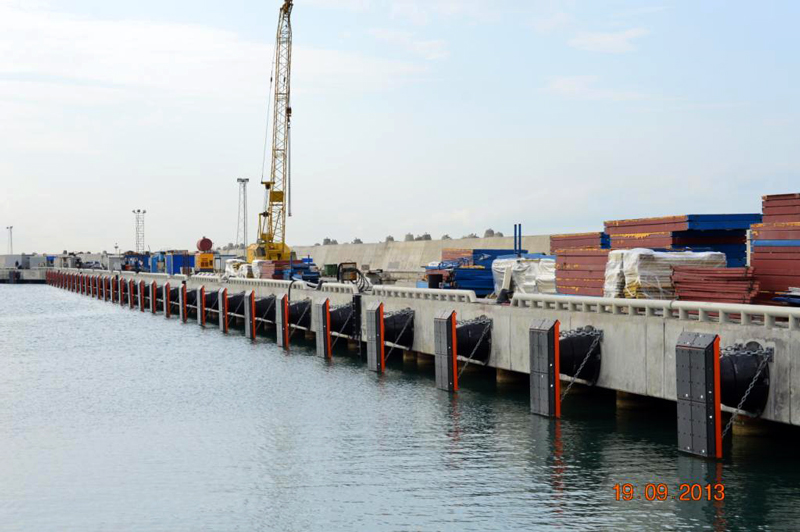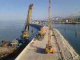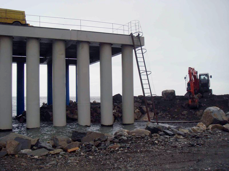 The port facilities under construction comprise an approaching canal, water areas of the auxiliary berths, coastal aids to navigation, a control-correcting station, and are designed to provide for: