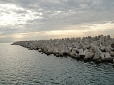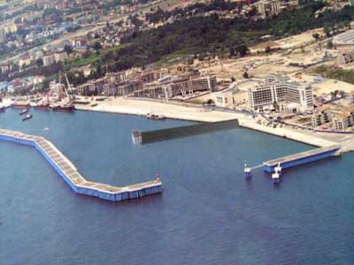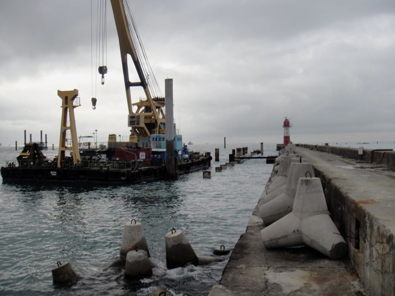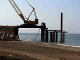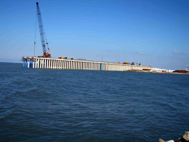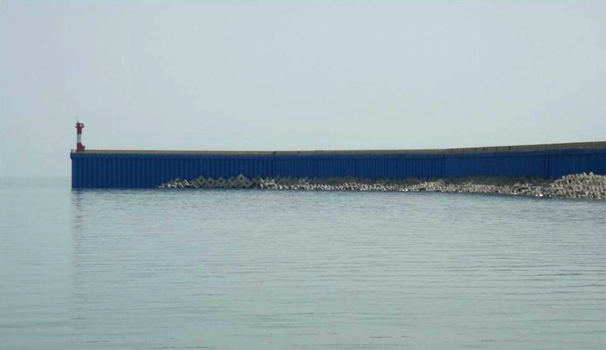 6) construction of the breakwater with length of 200 m, with a top level of +4.7 m;