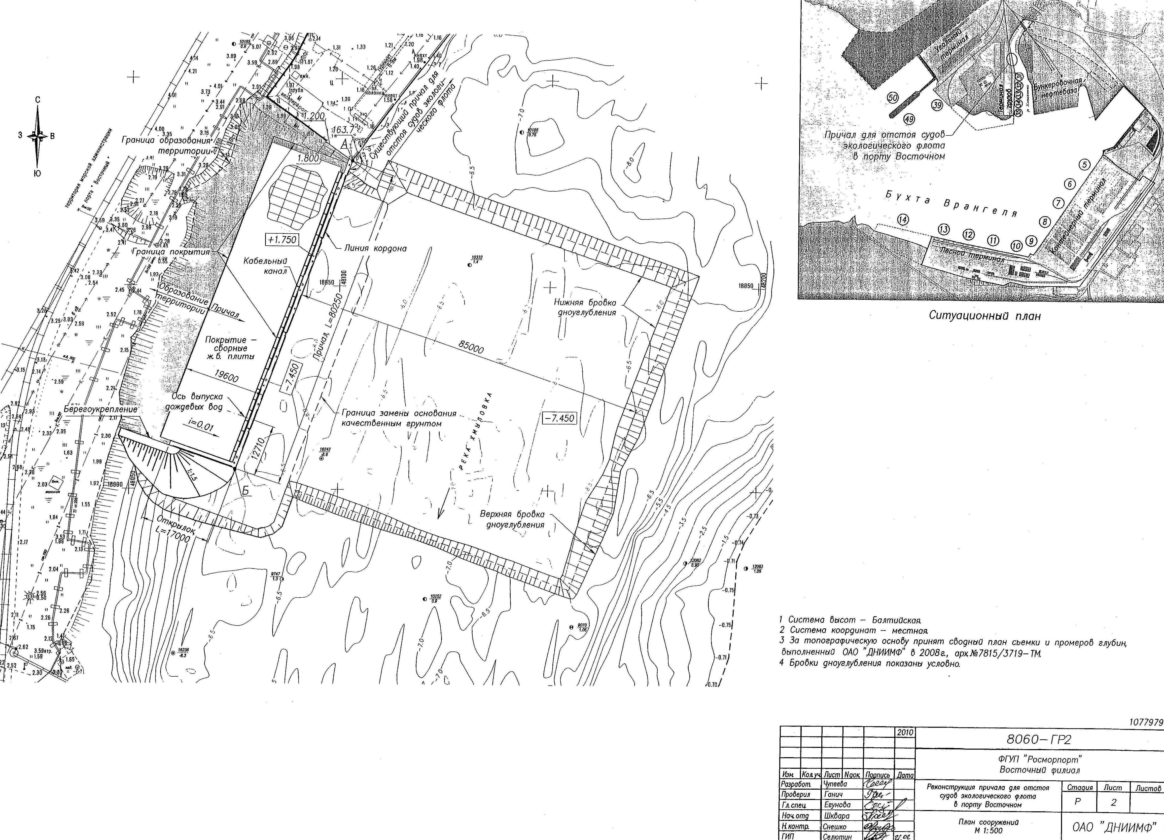 13) construction of the port fleet berth with a length of 180 m fleet with a natural seabed level of -4.9 m to -7 m designed for mooring of service and support (port) fleet vessels;