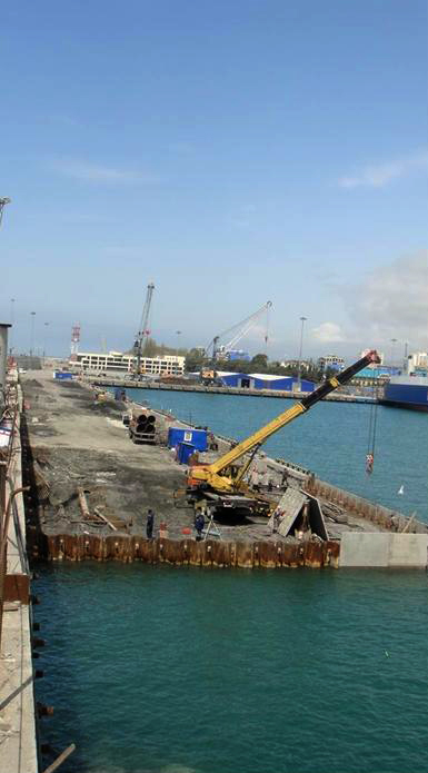 10) construction of the cruise vessels berth No. 1 with length of 355 m, with a seabed level of -10.4 m designed to handle vessels with a length of 295.5 m, a width of 32.2 m, a draft of 8 m, passenger capacity of 2,114 people;